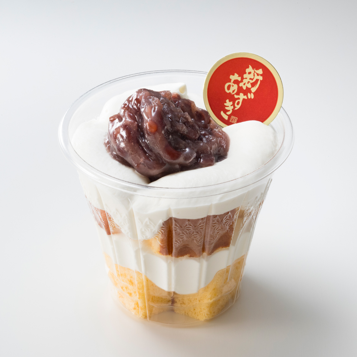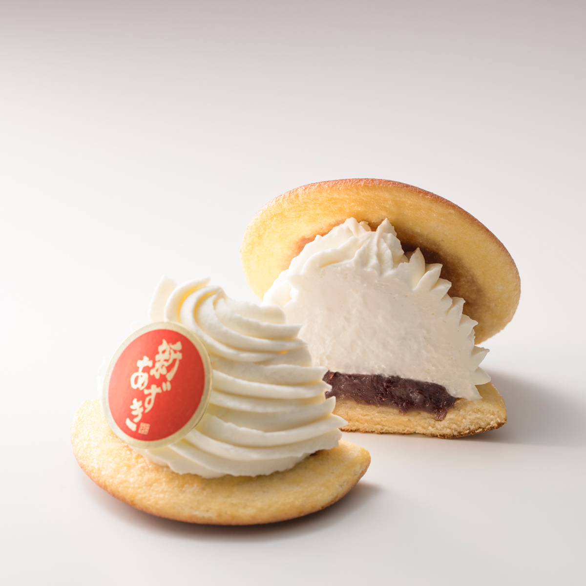 - ふわふわのスポンジ生地に新あずきのつぶあんとほんのり洋酒の効いたホイップを重ねて。