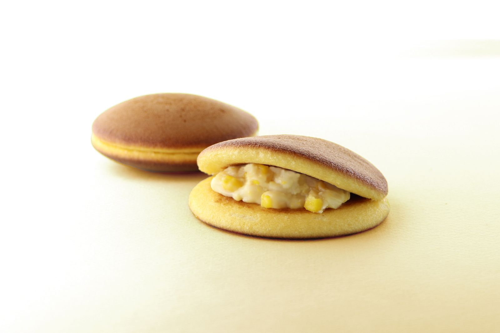 十勝産のスイートコーンが使用されている粒の入った既製のクリームをどらやきの皮でサンドした,食感も楽しめる食事系のどらやきです。